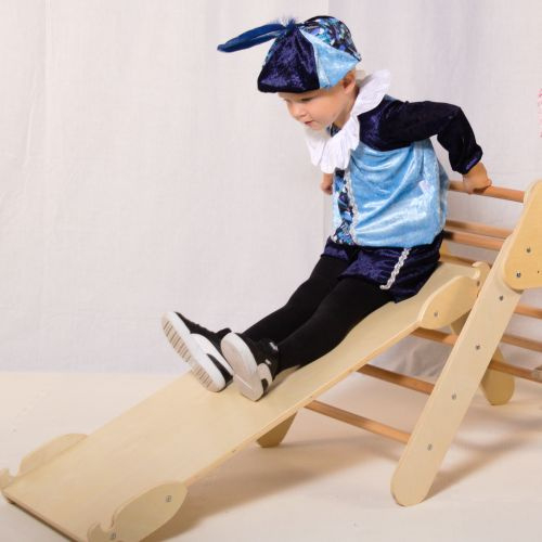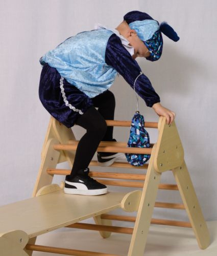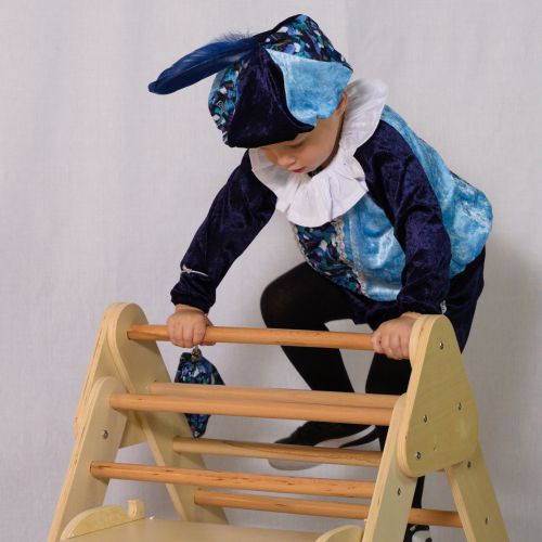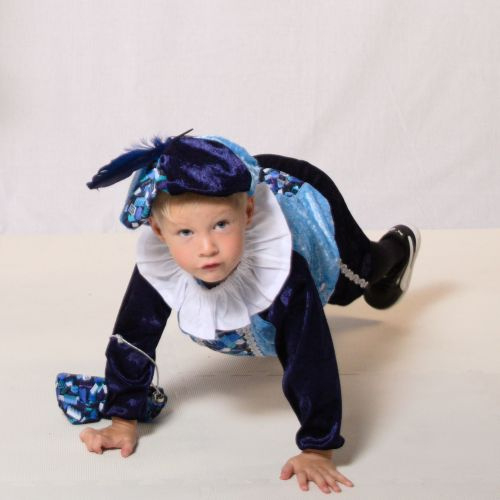 Hier showt Goos voor ons het volgende pietenpak: kinderpietenpak met broek.