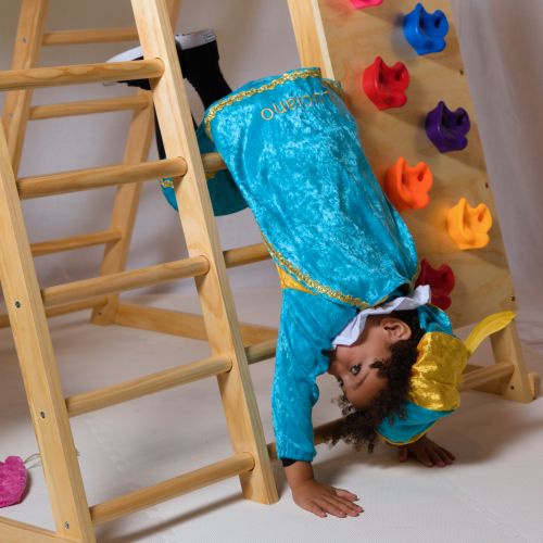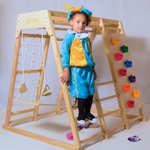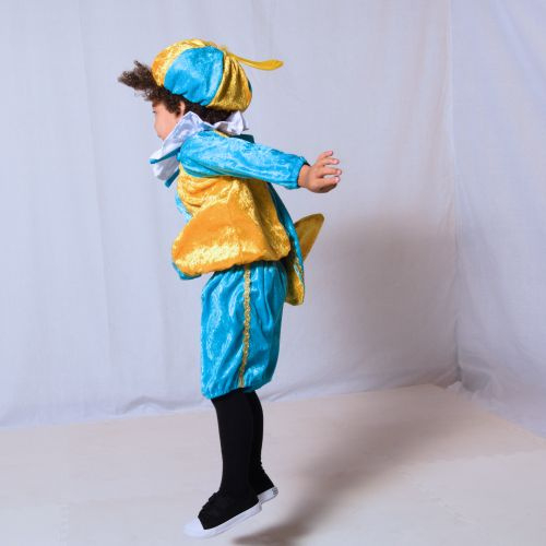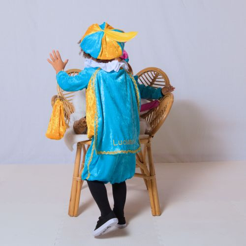 Hier showt Luciano voor ons het volgende pietenpakje: pietenpak met broek.
