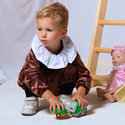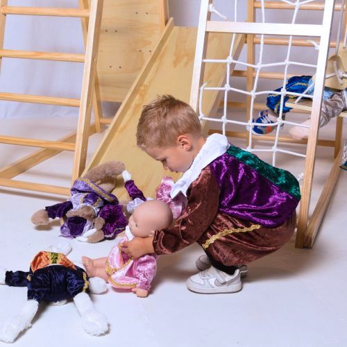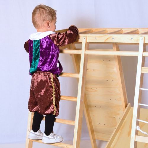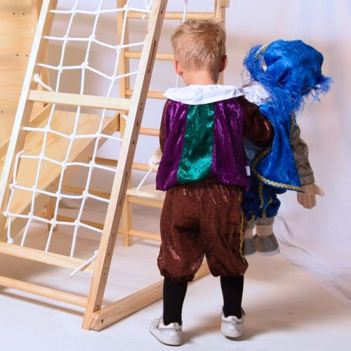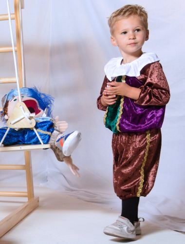 Joas showt hier voor ons het volgende pietenpak modelletje, kinder pietenpak met broek.