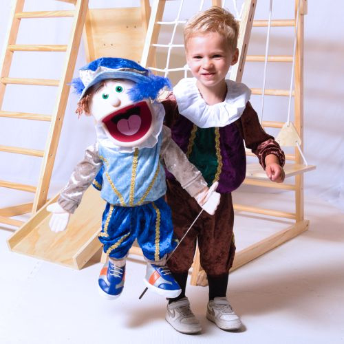 Hij heeft de Handpop / buikspreek pop/ Sillypuppets vast ook hier kunnen wij een leuk pak voor maken.
