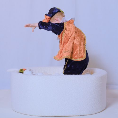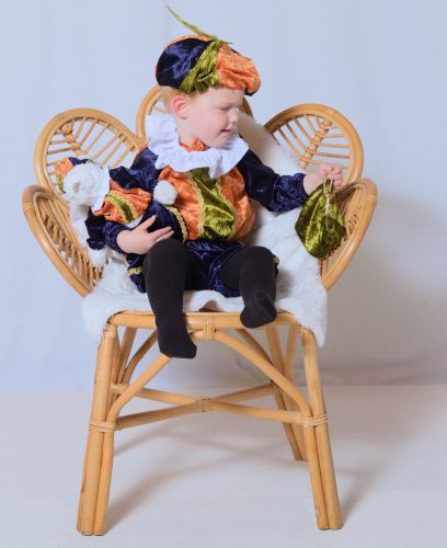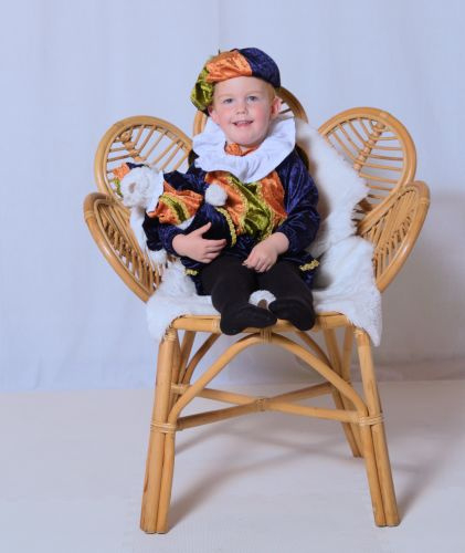 Dit is Mauren en hij showt voor ons het volgende pietenpak: kinderpietenpak met broek.