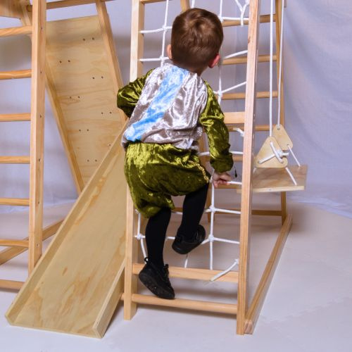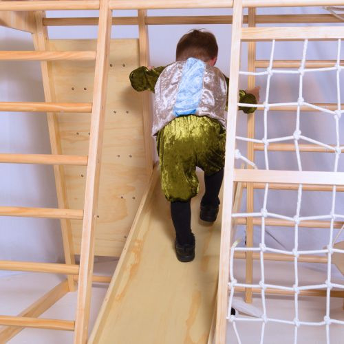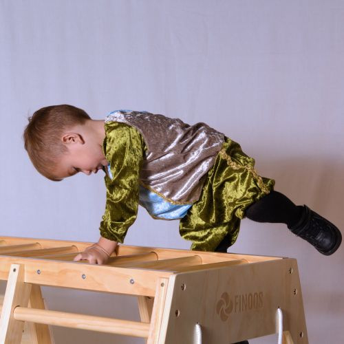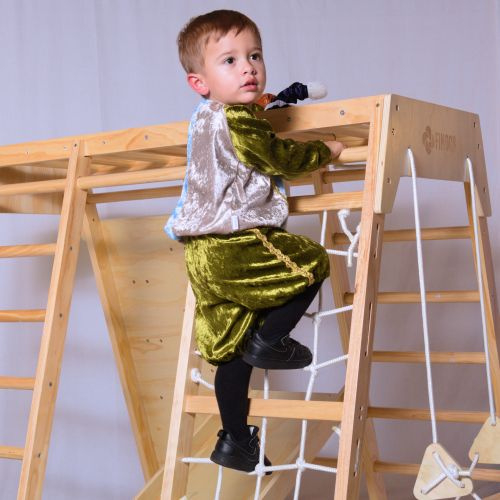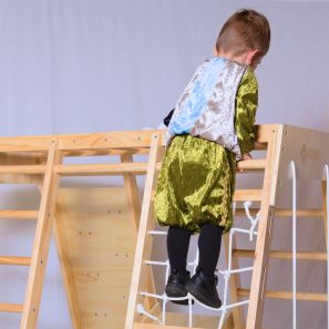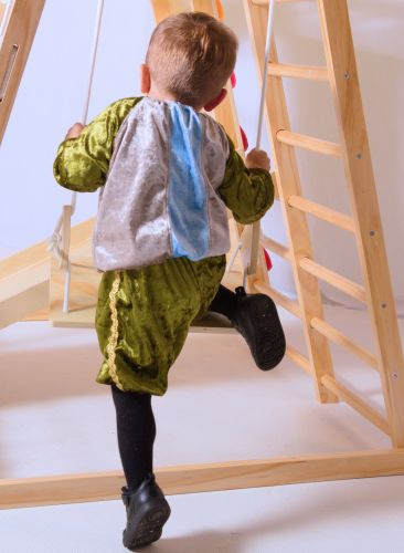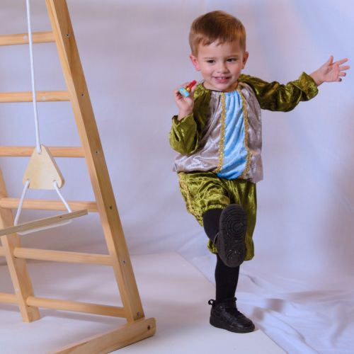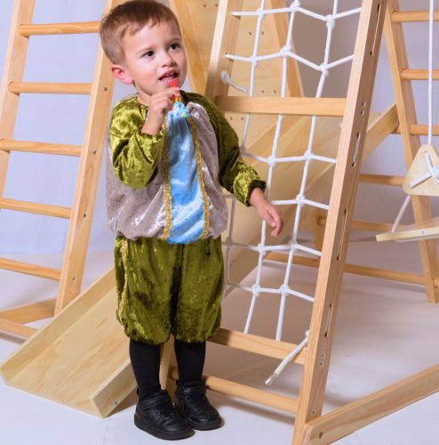 Hier showt Jaylen voor ons het volgende pietenpak: kinderpietenpak met broek.