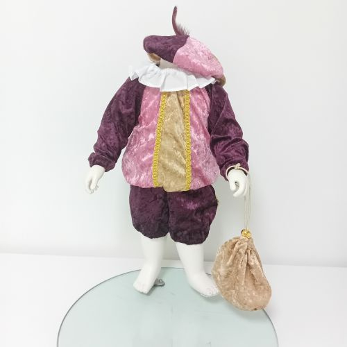 Gemaakt van velours de panne, het pakje kan gemaakt worden in 2 à 3 kleuren.